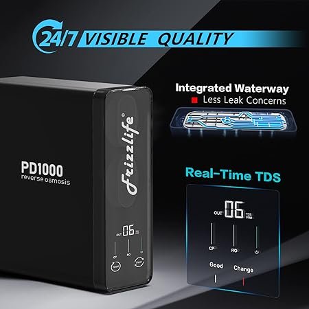 Le RO PD1000 est la quintessence de la purification, offrant une eau dépourvue de plus de 1000 contaminants et enrichie en minéraux essentiels. Conçu sans réservoir pour un débit constant, il promet une eau au pH équilibré, idéale pour chaque goutte consommée. Transformez votre eau du robinet en source de vitalité avec le système de filtration RO PD1000, doté d’une purification de 7 étapes et d’un post-filtre TAM4 pour une eau alcaline riche en minéraux.